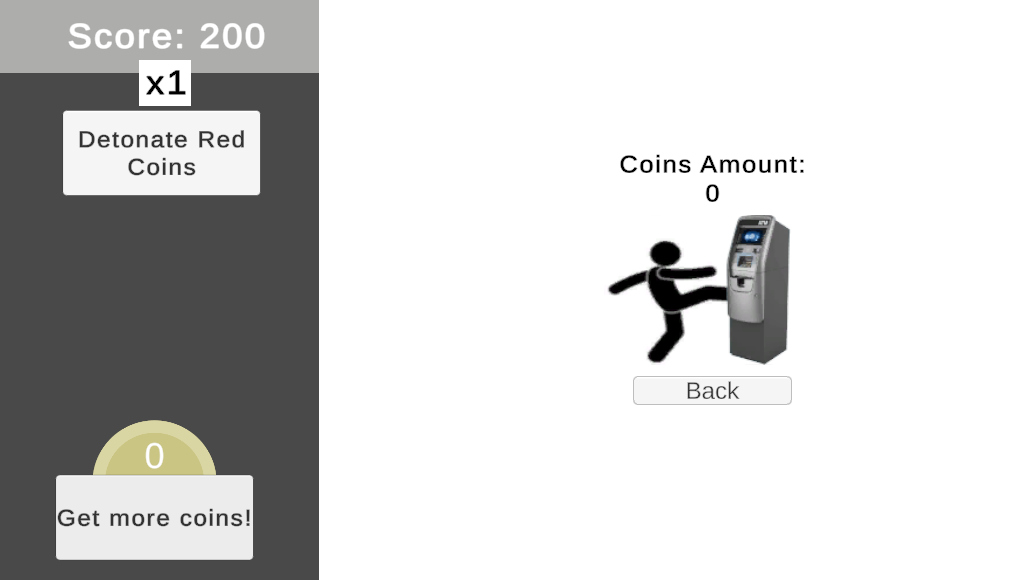 - Collect Coins by clicking on the ATM and making a withdrawal